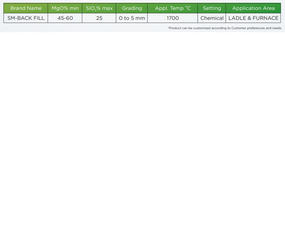 Backfilling mass, also known as backfill refractory or backfill material, is a type of refractory material used to fill voids, gaps, or cavities in the lining of industrial furnaces, ladles, and other high-temperature equipment. It serves several important purposes in the maintenance and repair of refractory linings The choice of backfilling mass depends on factors such as the location of the repair, the type of equipment, the operating temperature, and the specific needs of the application. Proper installation techniques, including appropriate compaction, curing, and adherence to manufacturer guidelines, are essential to ensure the desired results and longevity of the repaired lining .