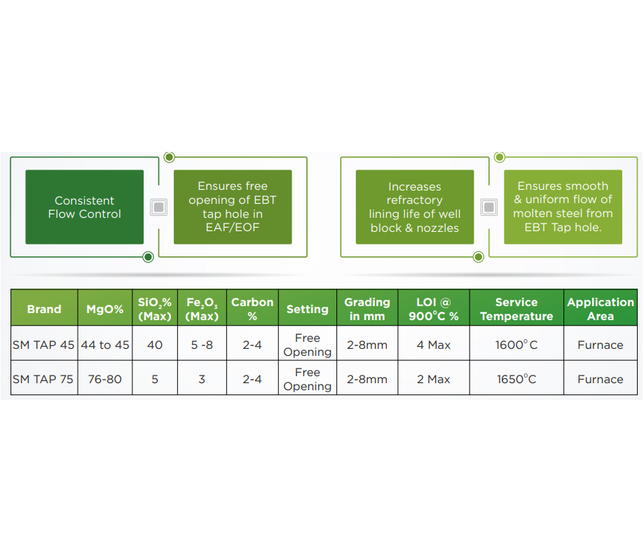 Eccentric Bottom Tapping (EBT) mass, is a type of refractory material specifically formulated for use in the tap hole area of steelmaking ladles equipped with Eccentric Bottom Tapping systems. The EBT system is a modern technology used to facilitate controlled and efficient tapping of liquid steel from the ladle. The tap hole in a steelmaking ladle is a critical point where molten steel is released for further processing. EBT mass is designed to withstand the extreme conditions encountered in this area, including high temperatures, rapid temperature changes, and the erosive and corrosive effects of molten steel and slag. .