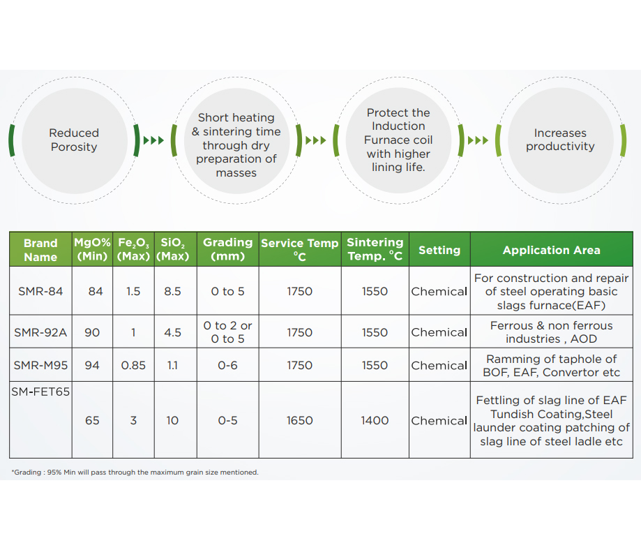 Ramming mass is another type of refractory material used in high-temperature applications, particularly in the lining of various industrial furnaces and kilns to prevent it from anti coating, corrosion & erosion. Unlike gunning mass, which is applied using a gunning machine, ramming mass is manually placed and compacted (rammed) into the desired shape within the refractory lining. It is commonly used for creating furnace linings, induction furnace linings, and other areas where a compacted refractory lining is required .